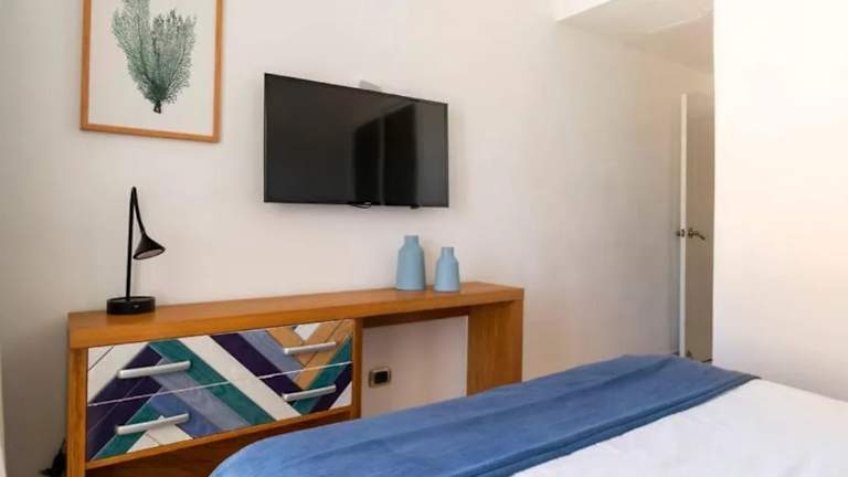 Die Ferienwohnung ist klimatisiert und umfasst 2 Schlafzimmer, ein Wohnzimmer sowie eine voll ausgestattete Küche mit Kühlschrank und Kaffeemaschine. Sie bietet zudem 2 Badezimmer mit Dusche und Haartrockner. Handtücher und Bettwäsche werden zur Verfügung gestellt.