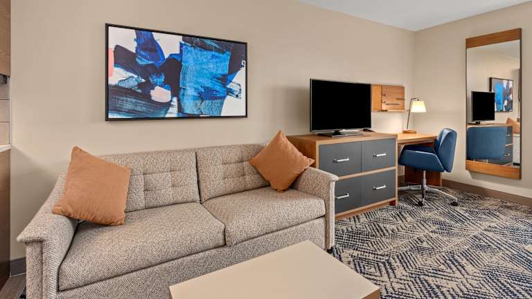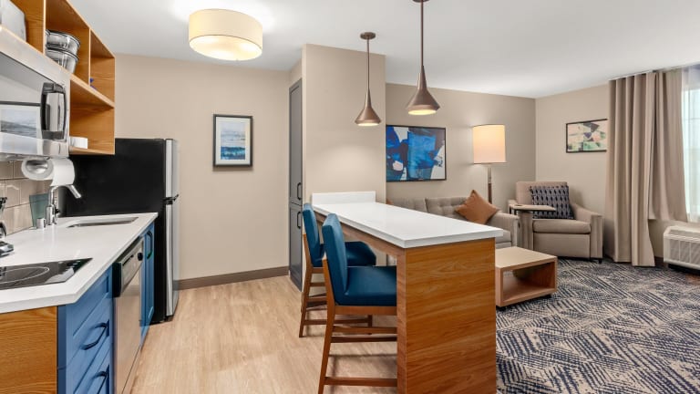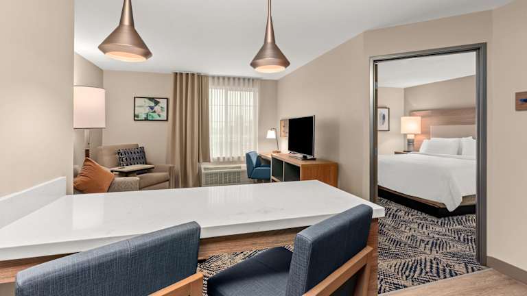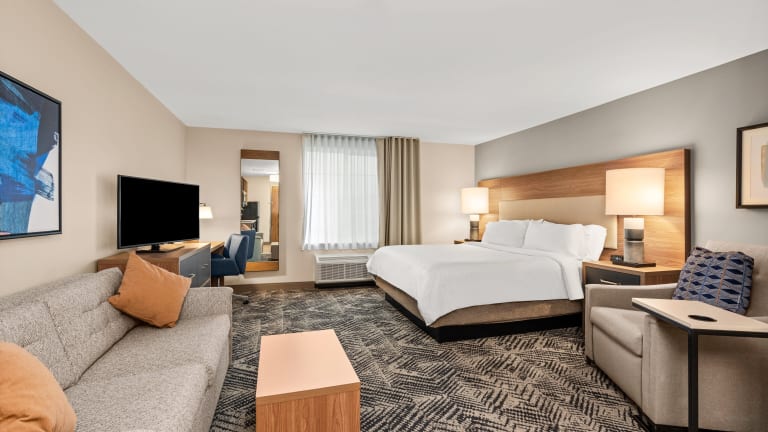 Die klimatisierten Zimmer im Candlewood Suites Sumner Puyallup Area sind komfortabel und modern eingerichtet. Jedes Zimmer verfügt über einen separaten Sitzbereich, einen Flachbild-Sat-TV und eine voll ausgestattete Küche mit Essbereich. Das private Badezimmer ist mit kostenfreien Pflegeprodukten, einer Dusche und einem Haartrockner ausgestattet. Bettwäsche und Handtücher werden gestellt.
