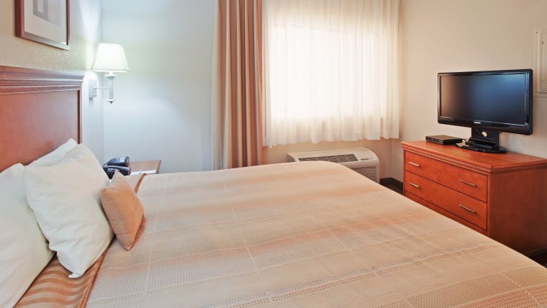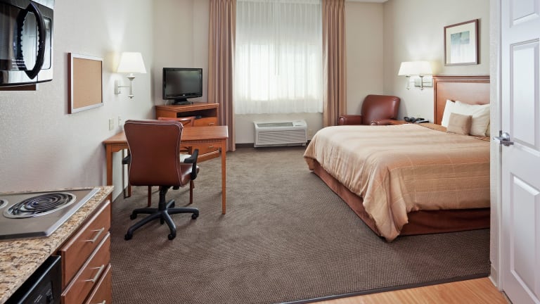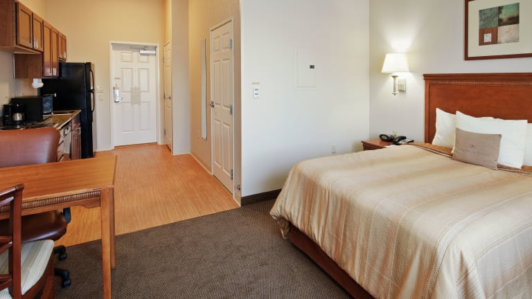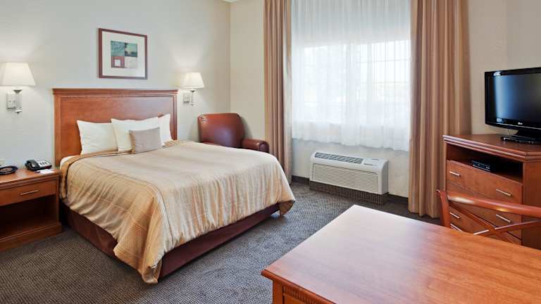 Die Suiten im Candlewood Suites Turlock sind geräumig und bieten den Gästen eine komfortable Unterkunft. Jede Suite verfügt über eine Küchenzeile, in der Sie Ihre eigenen Mahlzeiten zubereiten können, sowie einen gemütlichen Sitzbereich mit einem Flachbild-Kabel-TV. Die traditionell eingerichteten Suiten sind mit Holzmöbeln und einem Schreibtisch ausgestattet, um Ihren Aufenthalt so angenehm wie möglich zu gestalten.