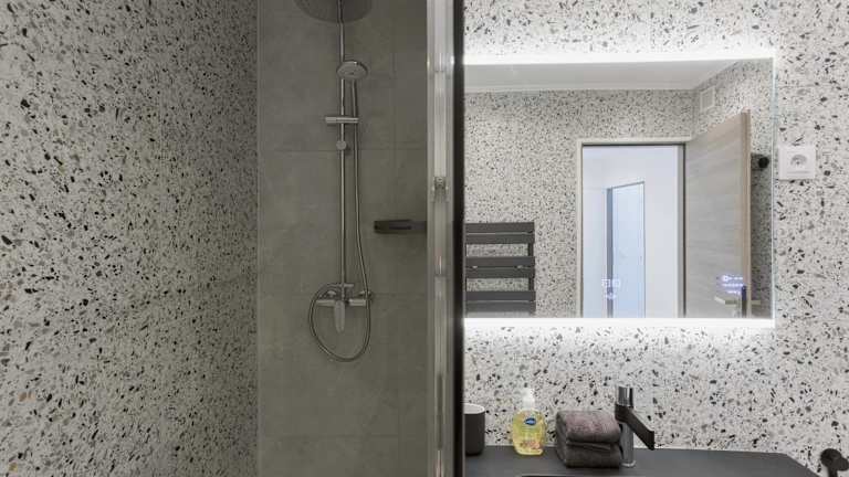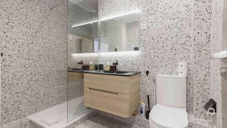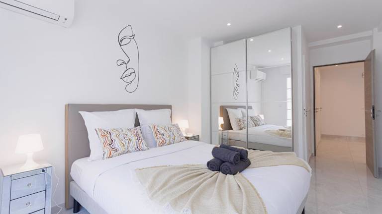 Die Ferienwohnung besteht aus zwei Schlafzimmern, einem Wohnzimmer, einer voll ausgestatteten Küche, zwei Badezimmern sowie Klimaanlage. Zu den Annehmlichkeiten gehören ein Kühlschrank, eine Kaffeemaschine, Handtücher und Bettwäsche. Die Badezimmer sind mit einer Dusche und einem Haartrockner ausgestattet. Schallisolierte Zimmer sind ebenfalls vorhanden.