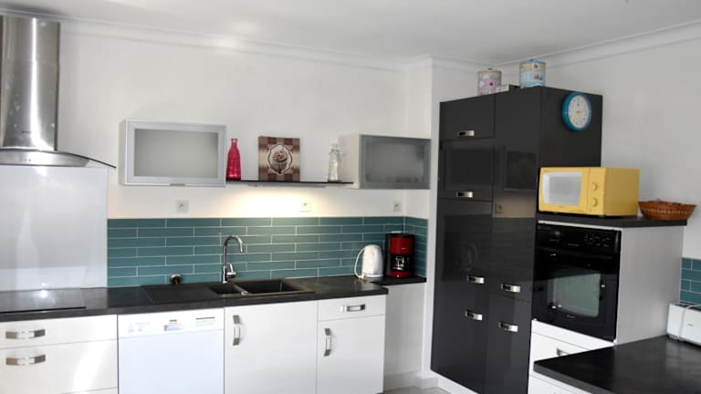 Das Ferienhaus verfügt über fünf Schlafzimmer, ein Wohnzimmer, zwei Badezimmer mit Dusche, eine gut ausgestattete Küche mit Kühlschrank und Geschirrspüler sowie einen Flachbild-TV.