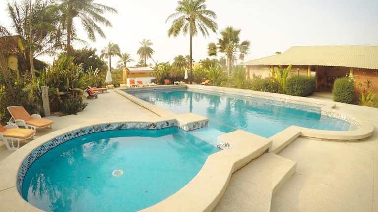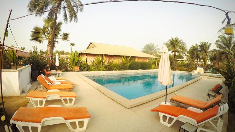 Das Hotel Cap-Sénégal in Cap Skirring bietet seinen Gästen eine entspannte Atmosphäre und zahlreiche Freizeitmöglichkeiten. Genießen Sie den Außenpool und die Sonnenterrasse sowie kostenfreies WLAN. Das Restaurant und die Bar sorgen für das leibliche Wohl und die Privatparkplätze stehen kostenlos zur Verfügung. Die Zimmer sind mit Ventilatoren ausgestattet und es gibt eine Vielzahl von Aktivitäten wie Tennis, Squash, Basketball, Volleyball, Badminton und Tischtennis. Ein besonderes Highlight ist das Freiluftkino, das von November bis April jeden Montagabend stattfindet. Das Hotel bietet auch Ausflüge und Fahrradverleih gegen Aufpreis an und der Strand ist nur 5 Gehminuten entfernt.