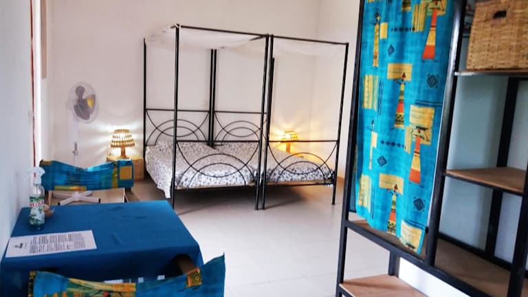 Die Zimmer im Hotel Cap-Sénégal sind einfach, aber komfortabel eingerichtet und verfügen über einen Ventilator, um eine angenehme Temperatur während Ihres Aufenthalts zu gewährleisten. Die Zimmer bieten auch einen Blick auf den Garten, der eine ruhige und entspannte Atmosphäre schafft.