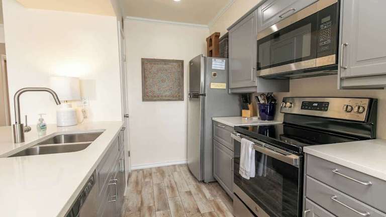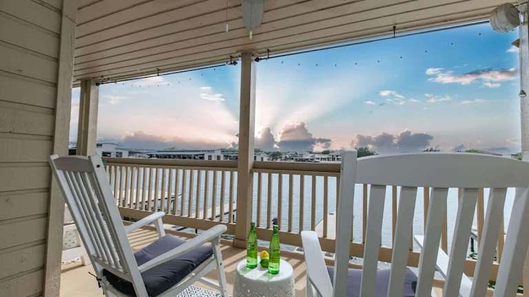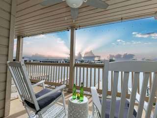 Cape Terrace Waterfront Oasis verfügt über eine Veranda und einen Balkon. Es handelt sich um ein Ferienhaus mit Klimaanlage.