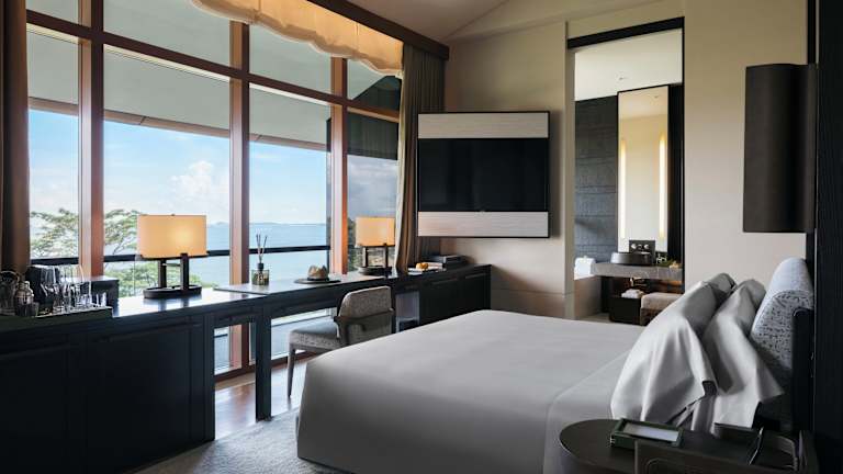 Die stilvollen Zimmer im Hotel Capella Singapore sind im zeitgenössischen asiatischen Stil gestaltet und bieten einen herrlichen Blick auf das Meer oder den Garten. Die Zimmer verfügen über kostenloses WLAN und kostenlose Erfrischungen wie Säfte, Softdrinks und Wasserflaschen. Jedes Zimmer bietet zudem eine Auswahl an kostenlosen Tageszeitungen, darunter auch chinesische Zeitungen, sowie einen kostenlosen Bügelservice für bis zu 5 Kleidungsstücke. Die Badezimmer sind mit kostenlosen Pflegeprodukten und Hausschuhen ausgestattet.