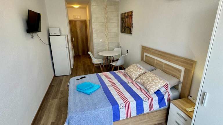 Capitan Friday Studio bietet Übernachtungsmöglichkeiten mit kostenlosem WLAN sowie einer Klimaanlage. Die Unterkunft verfügt über eine Terrasse und eine Bar. Zudem steht den Gästen eine Küche zur Verfügung.