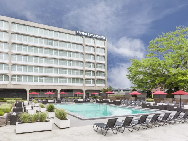 The Capitol Skyline Hotel's great location offers incredibly easy access to Reagan National Airport (four miles and metro accessible), as well as many of the Smithsonian Museums and Washington Monuments. The U.S. Capitol is only five blocks away and the Air and Space Museum is an easy walk. The Capitol Skyline is ideally located for both sightseeing and business trips. Also, The Capitol Skyline is a ten-minute walk to The Wharf and over 30 new restaurants. Metro's Navy Yard Station is just three blocks away, enabling you to reach anywhere in DC or the surrounding suburbs with comfort and ease.