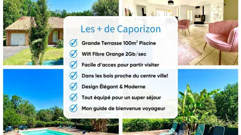 Die Caporizon Villa piscine au coeur du Périgord befindet sich in Les Pies und bietet eine günstige Lage für Ausflüge in die Umgebung. Der Bahnhof Bergerac ist 42 km entfernt, der Golfplatz Périgueux nur 11 km und die Burg Bourdeilles 29 km. In der Nähe gibt es auch den Golfplatz Domaine de la Marterie (34 km) und den Golfplatz Château Les Merles (46 km). Der Flughafen Bergerac ist der nächstgelegene Flughafen und liegt 45 km entfernt.