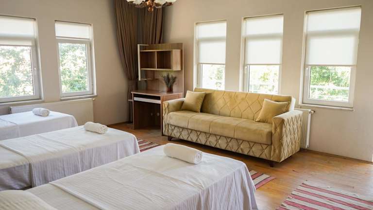 Die Unterkunft Cappadocia Beyaz Konak 2 befindet sich in Çalışanlar Mahallesi, Gülşehir/Nevşehir, in der Nähe von Sehenswürdigkeiten wie Özkonak Underground City und Uçhisar Kalesi, die etwa 28 bis 30 km entfernt liegen. Der Flughafen Nevşehir-Kapadokya ist lediglich 9 km entfernt.