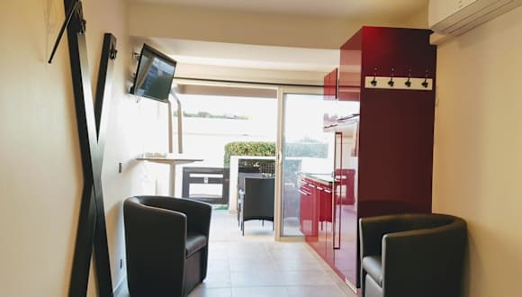 Naturist Village Studio Port Nature bietet eine Unterkunft mit einem Garten und einer Waschmaschine. Die klimatisierte Ferienwohnung verfügt über kostenloses WLAN und einen Privatparkplatz vor Ort. Die Ausstattung umfasst ein Schlafzimmer und ein Badezimmer.