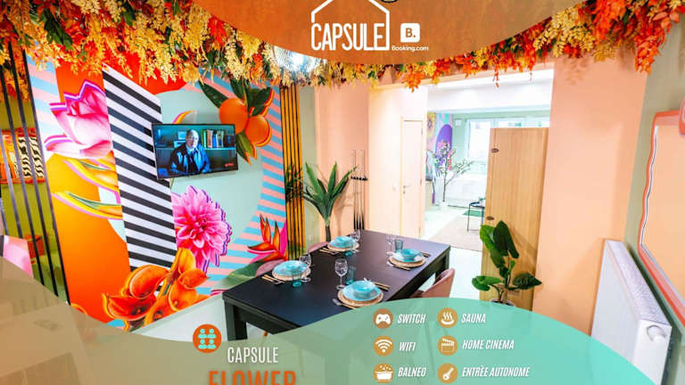 Capsule Flower - Balneo - Cinema - Billard - Nintendo Switch - Mons Centre ist eine Unterkunft, die durch die Bereitstellung von zusätzlichen Annehmlichkeiten wie einem Whirlpool und einer Sauna hervortritt. Die Ferienwohnung ist modern ausgestattet und bietet Raum für Entspannung und Freizeitaktivitäten.