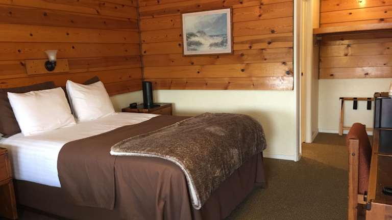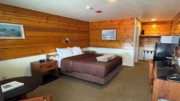 Die Zimmer im Captain's Choice Motel sind gemütlich und komfortabel eingerichtet und verfügen über Annehmlichkeiten wie Kabel-TV und eine möblierte Terrasse, auf der Sie den malerischen Blick auf die Berge genießen können. Jedes Zimmer verfügt auch über einen Essbereich mit Mikrowelle und Kühlschrank sowie ein eigenes Bad mit Dusche, Badewanne, Haartrockner und kostenlosen Pflegeprodukten.