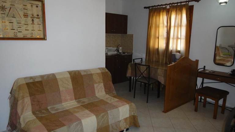 Die Apartments in den Captain's Suites sind geräumig und bieten Ihnen eine gemütliche und traditionelle Atmosphäre. Die Unterkünfte erstrecken sich über zwei Ebenen und verfügen über Holzbalkendecken, Holzmöbel und eine gut ausgestattete Küchenzeile. Jedes Apartment bietet zudem eine Terrasse oder einen Balkon, von dem aus Sie einen herrlichen Panoramablick über die Ägäis genießen können. Zur Ausstattung gehören auch eine Klimaanlage, ein TV und ein Haartrockner.