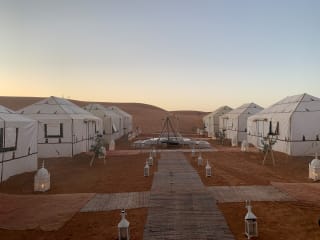 Das Caravanserai Luxury Desert Camps liegt in der Nähe von Erg Chebbi, nur 5 Gehminuten entfernt. Das Camp befindet sich in einer ruhigen Umgebung, mitten in der Natur und direkt an der Skipiste. Von hier aus können Sie die beeindruckende Landschaft und den Blick auf die Wüste genießen.