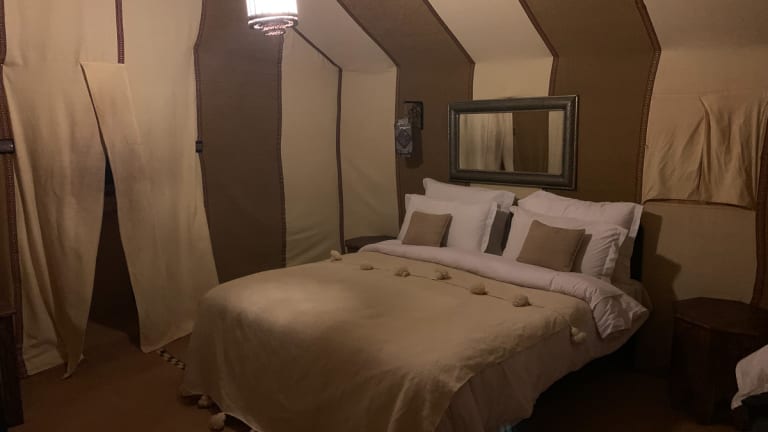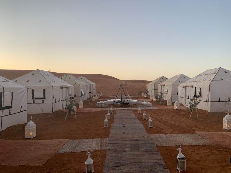 Das Caravanserai Luxury Desert Camps in Rissani bietet Ihnen ein außergewöhnliches Erlebnis inmitten der atemberaubenden Landschaft von Erg Chebbi. Das Safaricamp/Tentalow im Boutique-Stil bietet eine entspannte Atmosphäre und eine Vielzahl von Annehmlichkeiten. Genießen Sie die kulinarischen Köstlichkeiten im Restaurant, entspannen Sie am Pool oder erkunden Sie die Umgebung mit dem Fahrrad. Das freundliche Personal steht Ihnen jederzeit zur Verfügung und sorgt dafür, dass Ihr Aufenthalt unvergesslich wird.