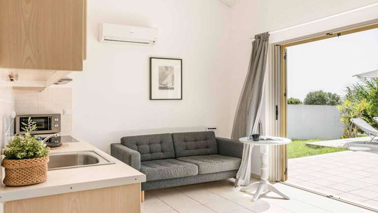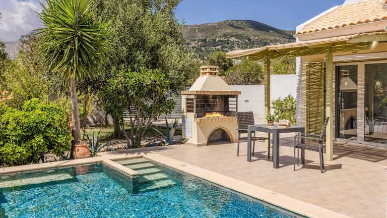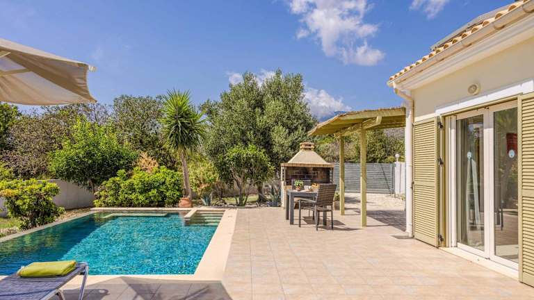 Die Villa verfügt über ein Schlafzimmer, ein Badezimmer, Bettwäsche und Handtücher. Zur Ausstattung gehören ein TV, eine voll ausgestattete Küche sowie eine Terrasse mit Blick auf den Garten.