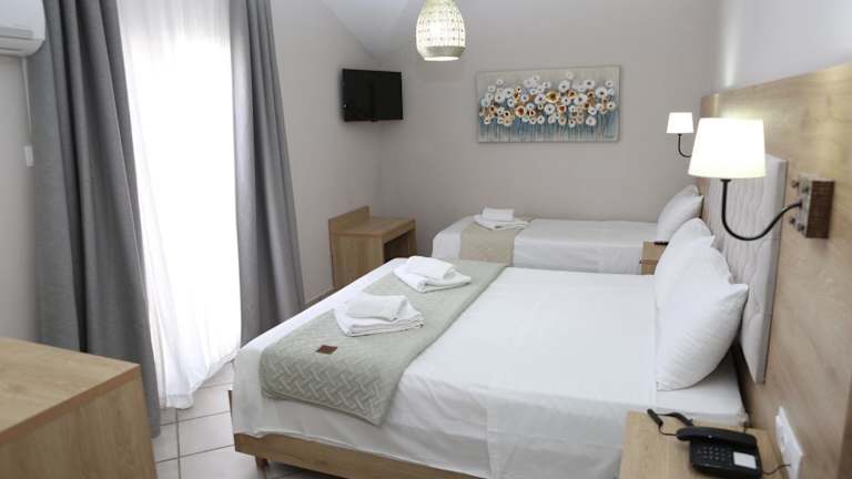 Die Gästezimmer im Caretta - Caretta Hotel sind mit einem Flachbild-TV mit Satellitenkanälen, einer Minibar, einem Wasserkocher und einem eigenem Badezimmer ausgestattet. Alle Zimmer verfügen über einen Balkon und viele bieten Meerblick. Bettwäsche und Handtücher sind im Preis inbegriffen.