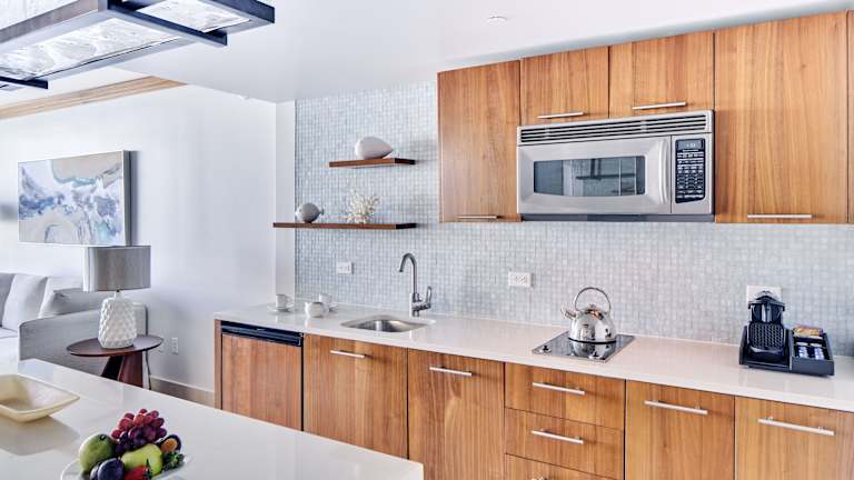 Die Unterkunft bietet 150 Suiten, darunter verschiedene Typen wie One Bedroom Suites mit Stadt- oder Meerblick. Jedes Zimmer ist mit einer Klimaanlage, einem Flachbild-TV, kostenfreiem WLAN und einer komplett ausgestatteten Küchenzeile ausgestattet. Die Badezimmer sind im Spa-Stil mit Steinfliesen und italienischem Glas gestaltet. In den Suiten sind Bademäntel, Hausschuhe und diverse Annehmlichkeiten wie Kühlschrank, Mikrowelle und Nespressomaschine vorhanden.