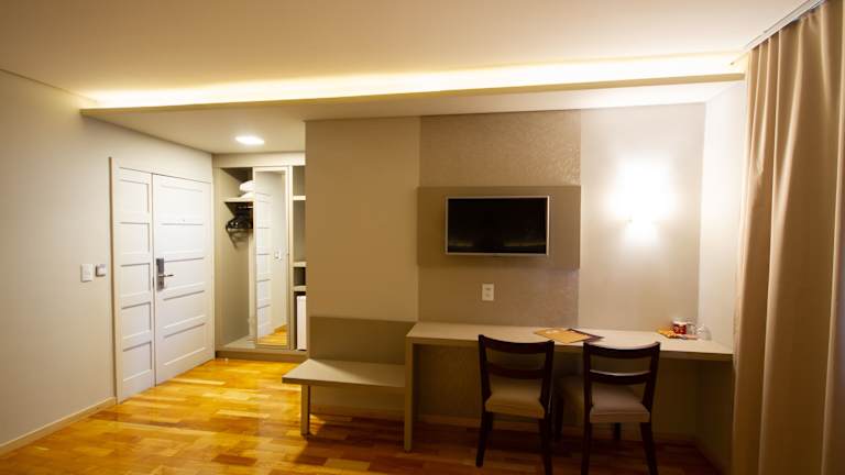 Das Grand Carimã Resort & Convention Center verfügt über insgesamt 313 Zimmer, die alle modern eingerichtet sind und über Annehmlichkeiten wie einen Flachbild-TV, einen Safe und kostenfreies WLAN verfügen. Die Zimmer sind geräumig und bieten einen komfortablen Rückzugsort für die Gäste.