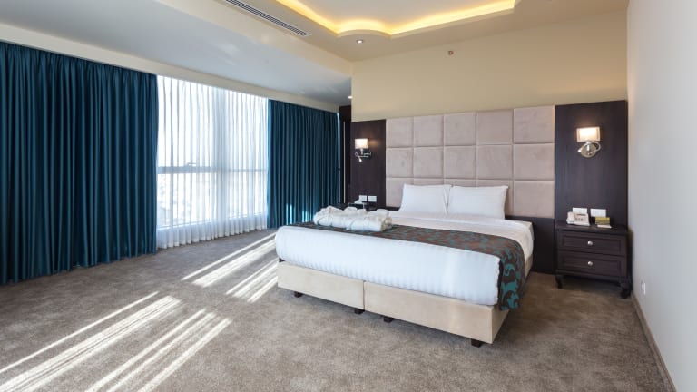 Das Carmel Hotel bietet Ihnen luxuriöse Unterkünfte in Ramallah und ist mit einem Fitnesscenter und einem Garten ausgestattet. Eine 24-Stunden-Rezeption sorgt für einen reibungslosen Aufenthalt, während das hauseigene Restaurant Gästen eine Vielzahl von kulinarischen Erlebnissen bietet.