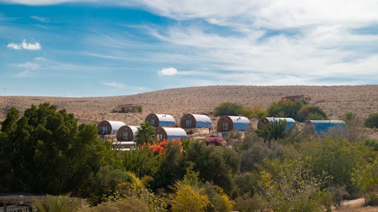 Das Carmey Avdat Farm bietet rustikale Chalets in einer idyllischen Umgebung in der Wüste Negev. Hier können Sie den Kontakt zur Natur genießen, während Sie den hauseigenen Wein probieren und die natürlichen Pools und Hängematten nutzen. Die Unterkunft ist umweltfreundlich und fördert das Recycling. Besuchen Sie auch die antiken Weinkeller im Nationalpark Avdat, nur 4 km entfernt.