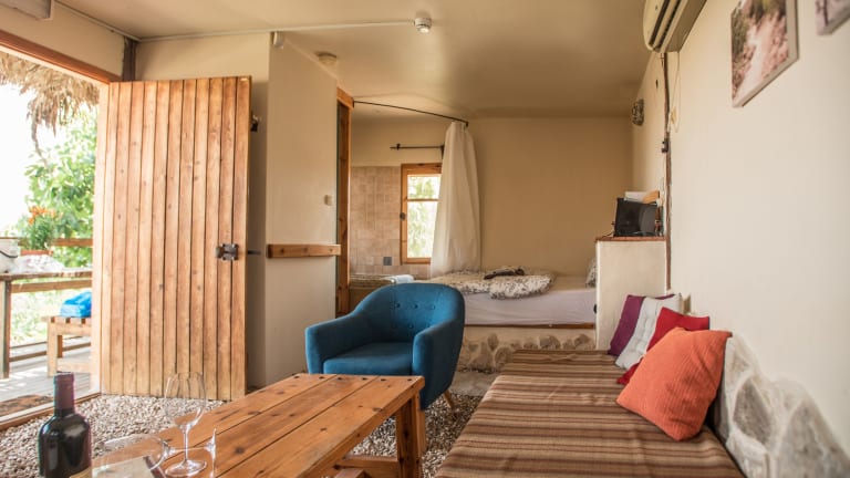 Die rustikalen Chalets im Carmey Avdat Farm sind auf dem Anwesen verteilt und bieten Ihnen eine authentische und gemütliche Unterkunft. Jedes Chalet verfügt über eine eigene Terrasse mit einem Essbereich, wo Sie die Natur um sich herum genießen können. Die Küchenzeilen sind mit einer Espressomaschine ausgestattet und Wein, Milch und Obst stehen kostenfrei zur Verfügung. In den Chalets gibt es keine TVs oder DVD-Player, um Ihnen einen ruhigen und friedlichen Aufenthalt zu ermöglichen.