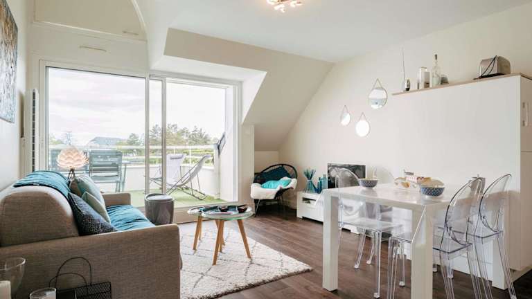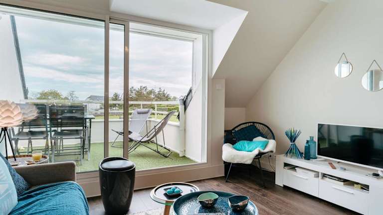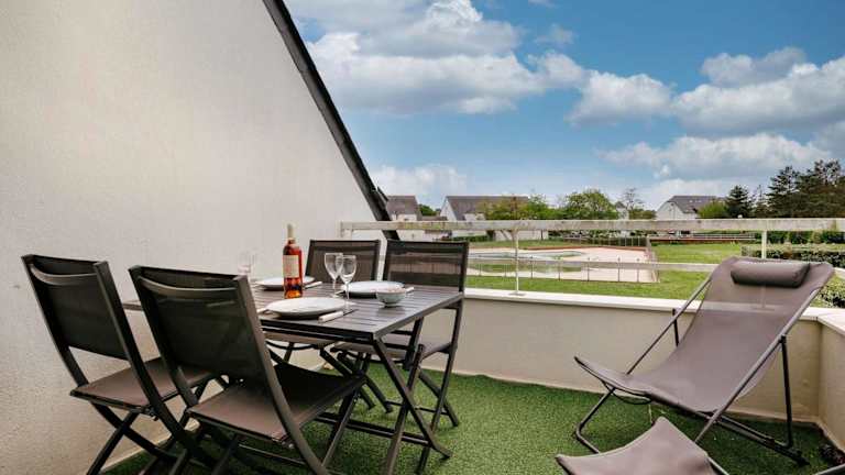 Carnac: Duplex 3 pièces avec Piscine Chauffée, Wifi et Parking, à 1 km de la Plage - FR-1-477-149 bietet einen Balkon und eine Wohnung mit zwei Schlafzimmern. Die Unterkunft ist modern ausgestattet und bietet eine komfortable Atmosphäre.
