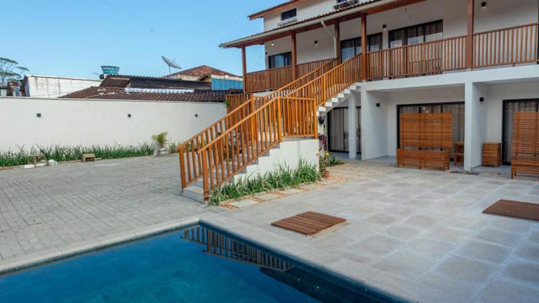 Die Unterkunft befindet sich etwa 700 m vom Strand Maresias entfernt und bietet eine ruhige Lage nahe verschiedenen lokalen Attraktionen, darunter das International Square of Surf, das sich nur 800 m entfernt befindet. Der Hafen São Sebastião ist in einer Entfernung von 28 km erreichbar.