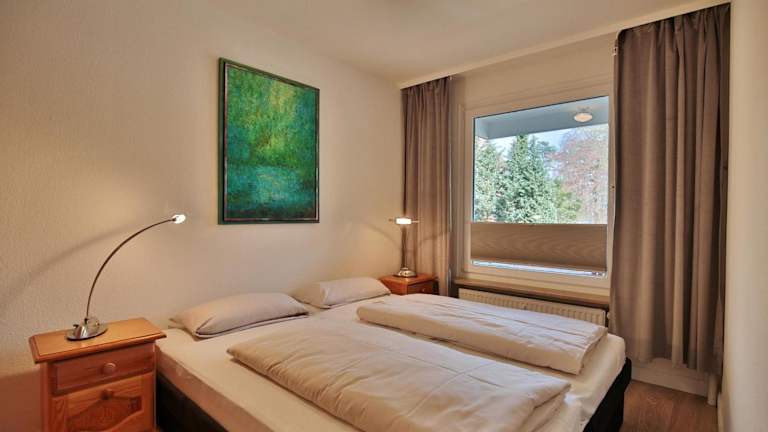 Das Appartement verfügt über zwei Schlafzimmer, eine Küche, die mit einem Geschirrspüler und einem Ofen ausgestattet ist, sowie ein Badezimmer mit Dusche, Haartrockner und Waschmaschine. Bettwäsche und Handtücher sind nicht im Preis enthalten, können jedoch gegen einen Aufpreis ausgeliehen werden.