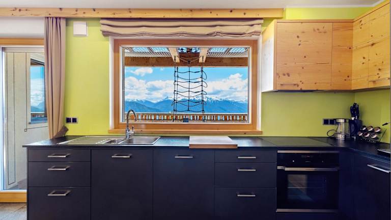 Die Ferienwohnung umfasst 4 Schlafzimmer und 4 Badezimmer. Zur Ausstattung gehören Bettwäsche, Handtücher, ein TV mit Satellitenkanälen, eine voll ausgestattete Küche und ein Balkon mit Blick auf die Berge.