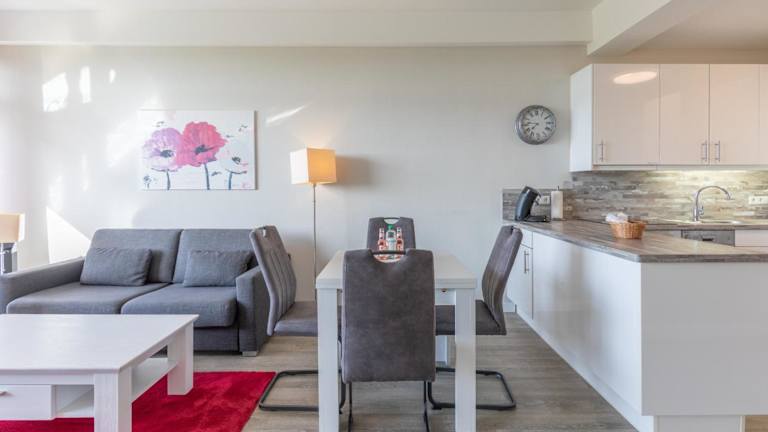 Die Ferienwohnung der Unterkunft verfügt über ein Schlafzimmer, ein Wohnzimmer mit Flachbild-TV und eine gut ausgestattete Küche mit Kühlschrank und Geschirrspüler. Ein Badezimmer mit Dusche ist ebenfalls vorhanden. Die Unterkunft bietet allergikerfreundliche Zimmer und Gartenmöbel auf dem Balkon.