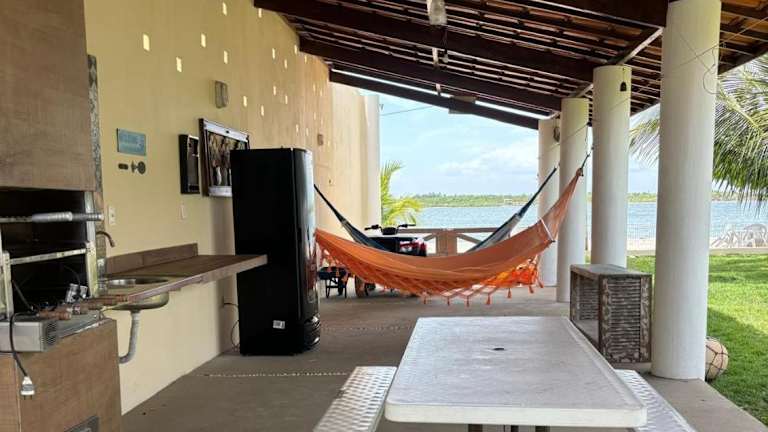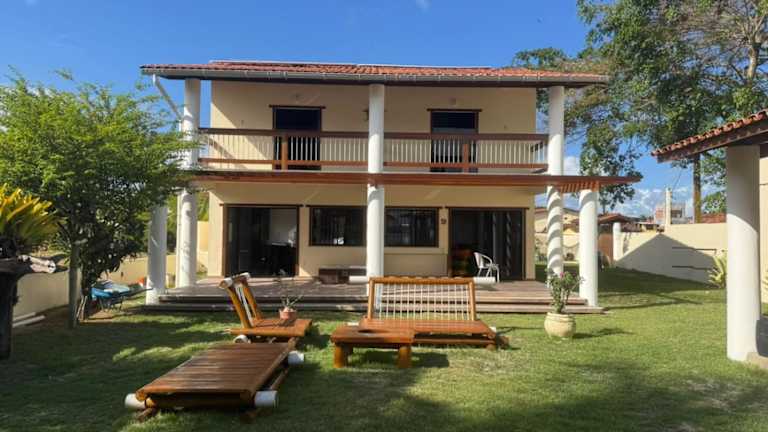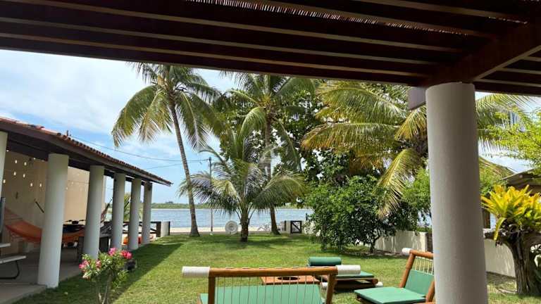 Die Casa a Beira mar na Barra do Serinhaem Ituberá - Bahia - Brasil bietet eine klimatisierte Unterkunft mit Veranda und Patio. Es handelt sich um ein Ferienhaus mit einer Terrasse und Meerblick, das über kostenlosen Privatparkplatz sowie kostenfreies WLAN verfügt.