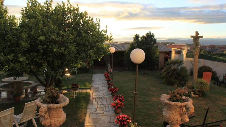 Das Hotel bietet schöne Gärten, in denen die Gäste entspannen und die Natur genießen können. Es gibt auch einen Kinderspielplatz für die kleinen Gäste. Außerdem verfügt das Hotel über private Gemüsegärten und Weinberge.