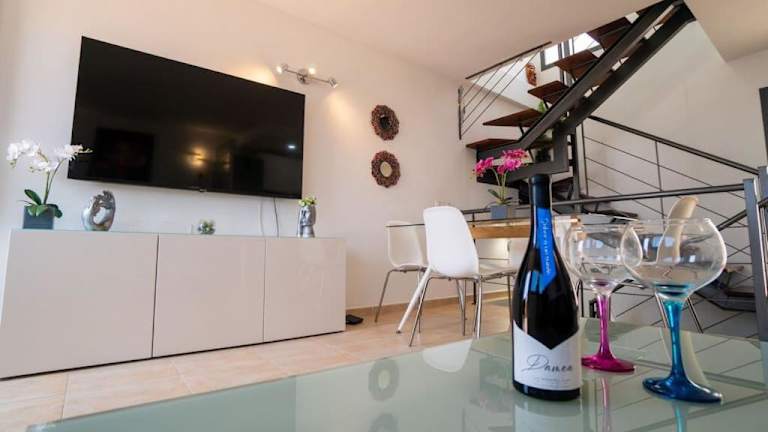 Die Ferienunterkunft verfügt über eine gut ausgestattete Küche, drei Schlafzimmer, ein Wohnzimmer und zwei Badezimmer mit Bidet und Dusche. Zudem stehen ein kabelgebundener Flachbild-TV, kostenloses WLAN, Handtücher und Bettwäsche zur Verfügung. Ein Balkon bietet Aussicht auf die Berge, und eine Terrasse lädt zum Verweilen im Freien ein.