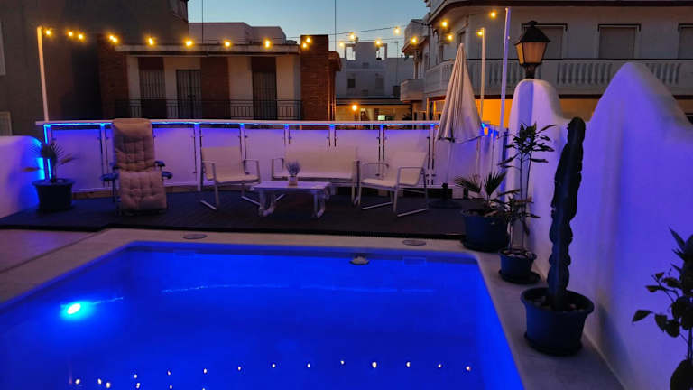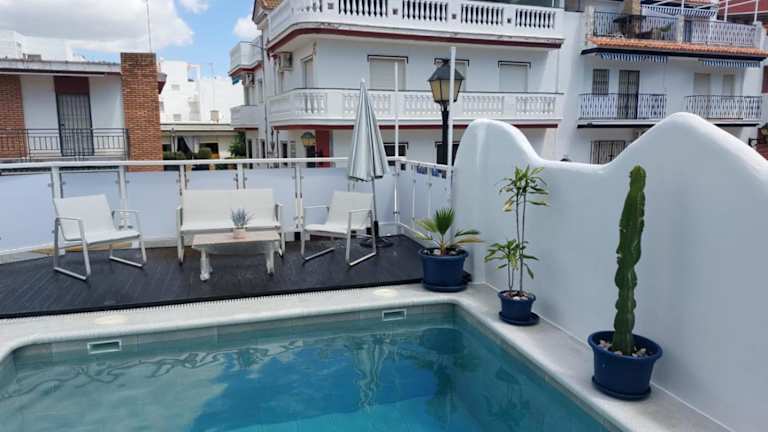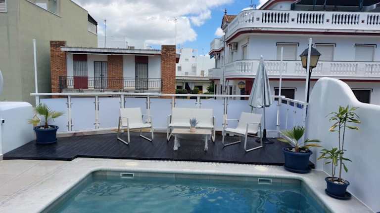 Die Unterkunft Casa Alhamar con piscina privada liegt etwa 400 m vom Strand Playa de Punta Umbría entfernt. Die Umgebung bietet zahlreiche Möglichkeiten für Aktivitäten wie Fahrradfahren und Tischtennis. Der Golfplatz Nuevo Portil ist 11 km entfernt, während der Golfplatz El Rompido 18 km von der Unterkunft entfernt ist. Der nächstgelegene Flughafen ist der Flughafen Sevilla-San Pablo, der in 120 km erreicht werden kann.