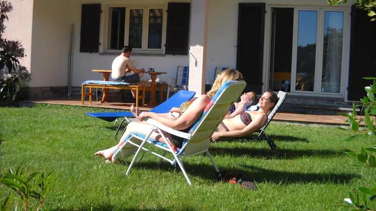 Das Casa Alice bietet einen einladenden Garten mit Liegestühlen, in dem Sie sich entspannen und die Sonne genießen können. Die Umgebung eignet sich auch hervorragend für Spaziergänge entlang des Ufers der Maggia oder für Ausflüge in die umliegenden Orte wie Locarno und Ascona.