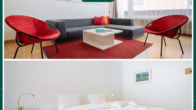 Die Wohnung umfasst ein Schlafzimmer, ein Wohnzimmer, einen Kabel Flachbild-TV, eine gut ausgestattete Küche sowie ein Badezimmer mit Whirlpool und Badewanne. Handtücher und Bettwäsche werden bereitgestellt.