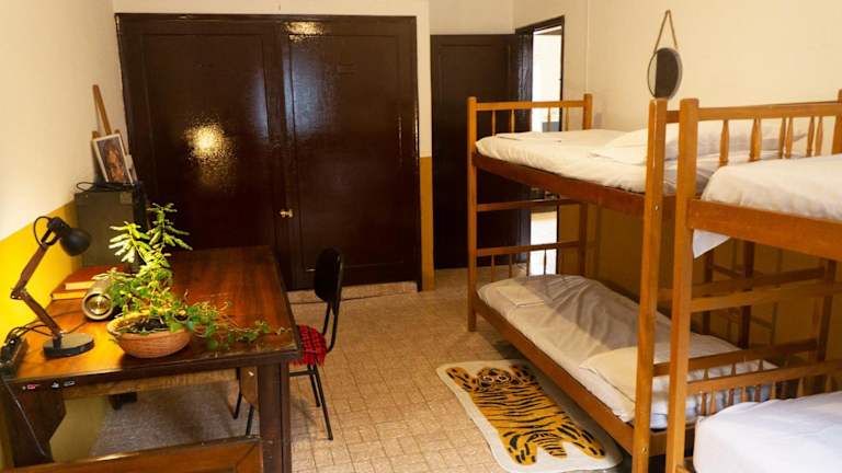 Jedes Zimmer ist ausgestattet mit einem Schreibtisch, einem Flachbild-TV, einem Gemeinschaftsbad und einem Kühlschrank.