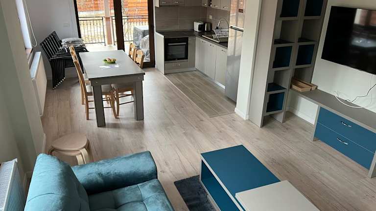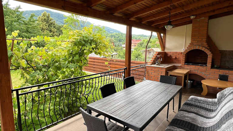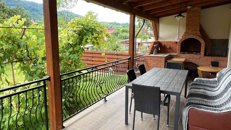 Das Ferienhaus im Casa Ana Corbșori verfügt über zwei Schlafzimmer, ein geräumiges Wohnzimmer und eine voll ausgestattete Küche. Die Zimmer sind gemütlich eingerichtet und bieten Platz für bis zu vier Personen. Von der Terrasse aus haben Sie einen schönen Blick auf den Garten. Es gibt auch zwei Badezimmer, die mit kostenfreien Pflegeprodukten ausgestattet sind.
