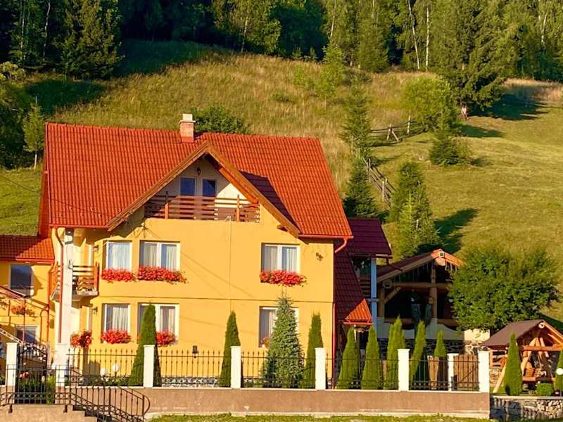 Das Casa Anghel in Bilbor, Harghita, ist ein gemütliches Ferienhaus, das von einem schönen Garten umgeben ist. Hier können Sie einen entspannten Aufenthalt genießen und die umliegende Natur erkunden. Das Ferienhaus bietet komfortable Unterkünfte mit 4 Schlafzimmern, einer gut ausgestatteten Küche und 4 Badezimmern. WLAN und Parkplätze stehen Ihnen kostenfrei zur Verfügung.