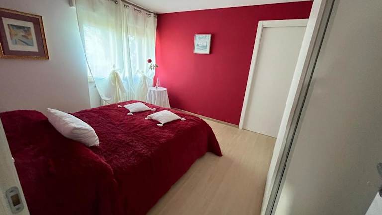 Die Ferienwohnung besteht aus zwei Schlafzimmern und einem Wohnzimmer. Sie ist mit Klimaanlage ausgestattet und verfügt über eine voll ausgestattete Küche mit Kühl- und Kaffeemaschine. Ein Badezimmer mit Bidet und Dusche ist ebenfalls vorhanden. Handtücher und Bettwäsche werden zur Verfügung gestellt.
