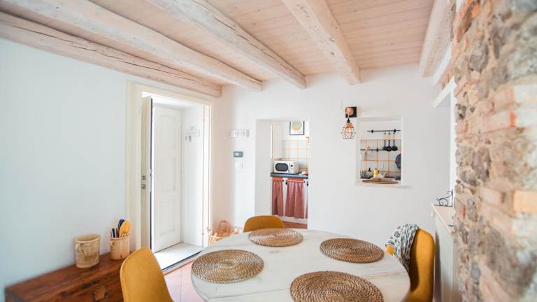 Das Ferienhaus umfasst 1 Schlafzimmer, ein Wohnzimmer, eine voll ausgestattete Küche mit Kühlschrank und Kaffeemaschine sowie 1 Badezimmer mit Bidet und Dusche. Handtücher und Bettwäsche werden bereitgestellt.