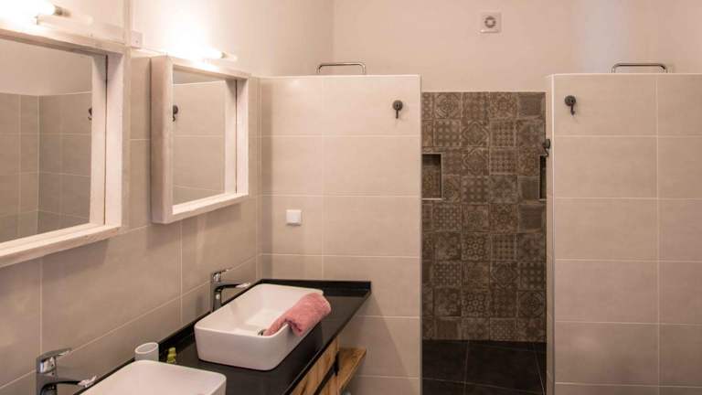 Das Ferienhaus besteht aus zwei Schlafzimmern und einem Wohnzimmer. Die voll ausgestattete Küche verfügt über einen Kühlschrank und eine Kaffeemaschine. Es gibt zwei Badezimmer mit einer Dusche. Handtücher und Bettwäsche werden bereitgestellt.