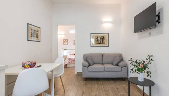 Die Ferienwohnung besteht aus einem Schlafzimmer und einem Wohnzimmer sowie einer voll ausgestatteten Küchenzeile mit Kühlschrank und Kaffeemaschine. Zusätzlich gibt es ein Badezimmer, das mit einem Bidet und einer Dusche ausgestattet ist. Handtücher und Bettwäsche werden zur Verfügung gestellt.
