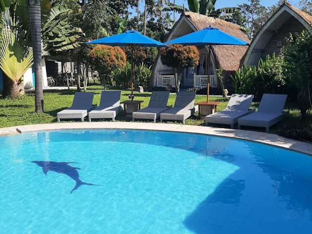 Das Casa Azzurra auf Gili Air ist die perfekte Wahl für einen entspannten und komfortablen Aufenthalt. Mit einem Außenpool, einem schönen Garten und einer gemütlichen Bar bietet das Bed & Breakfast alles, was Sie für einen erholsamen Urlaub benötigen. Genießen Sie den kostenlosen WLAN-Zugang und den herrlichen Blick auf den Pool. Das freundliche Personal steht Ihnen gerne zur Verfügung und bietet Zimmerservice an. Beginnen Sie Ihren Tag mit einem köstlichen Frühstück, das kontinentale, italienische und vegetarische Speisen umfasst. In der Umgebung können Sie sich beim Schnorcheln vergnügen und die Schönheit der Insel entdecken. Der Strand Gili Air ist nur 800 m entfernt und der Hafen Bangsal erreichen Sie nach 6,5 km. Der internationale Flughafen Lombok liegt etwa 61 km entfernt, und das Bed & Breakfast bietet auch einen Flughafentransfer gegen Aufpreis an.