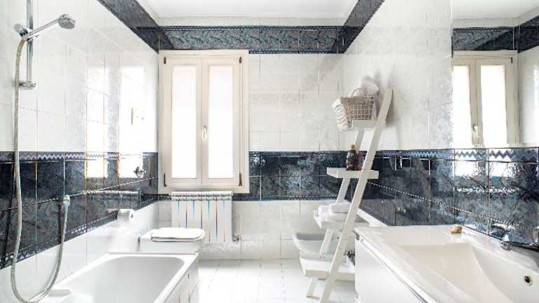 Die Ferienwohnung ist klimatisiert und verfügt über ein modernes Interieur mit einem Flachbild-TV. Sie umfasst eine voll ausgestattete Küche mit Kühlschrank, einen Sitzbereich sowie eine Waschmaschine. Zudem gibt es zwei Badezimmer, die mit einem Bidet, einer Dusche und einer Badewanne ausgestattet sind.
