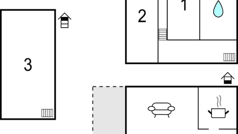 Das Ferienhaus besteht aus drei Schlafzimmern und einem Wohnzimmer. Die Küche ist voll ausgestattet und beinhaltet einen Kühlschrank und eine Kaffeemaschine. Das Badezimmer ist mit einer Dusche ausgestattet.