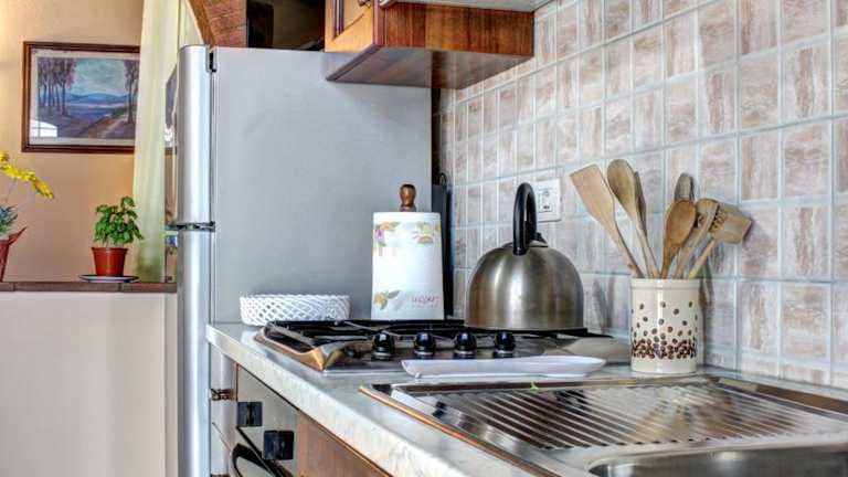 Das Ferienhaus verfügt über 1 Schlafzimmer, ein Wohnzimmer und eine voll ausgestattete Küche mit einem Kühlschrank. Zudem sind ein Badezimmer mit einem Bidet und kostenlosen Pflegeprodukten vorhanden. Handtücher und Bettwäsche werden gestellt.