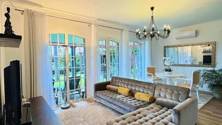 Die Villa besteht aus drei Schlafzimmern, einem Wohnzimmer und einer voll ausgestatteten Küche, die mit einem Geschirrspüler und einem Wasserkocher ausgestattet ist. Es gibt zwei Badezimmer mit Dusche und Haartrockner. Handtücher und Bettwäsche werden zur Verfügung gestellt. Die Villa ist klimatisiert und verfügt über einen eigenen Balkon.