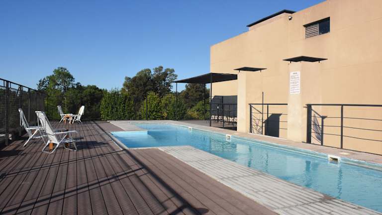 Die Campus Suites in Pilar bieten eine komfortable Unterkunft mit einem Garten, Apartments zur Selbstverpflegung und Zimmern. Das Hotel verfügt über ein Restaurant und eine Terrasse mit einem Wasserspiegel, die zum Entspannen einladen. WLAN ist in allen Bereichen kostenfrei verfügbar. Die Zimmer sind klimatisiert und beheizbar und bieten einen Schreibtisch sowie Kabel-TV. Die Apartments verfügen zudem über eine voll ausgestattete Küche. Zur weiteren Ausstattung gehören eine Snackbar, ein Tourenschalter und Tagungsmöglichkeiten. Der Flughafen Buenos Aires-Jorge Newbery ist ca. 45 km entfernt.